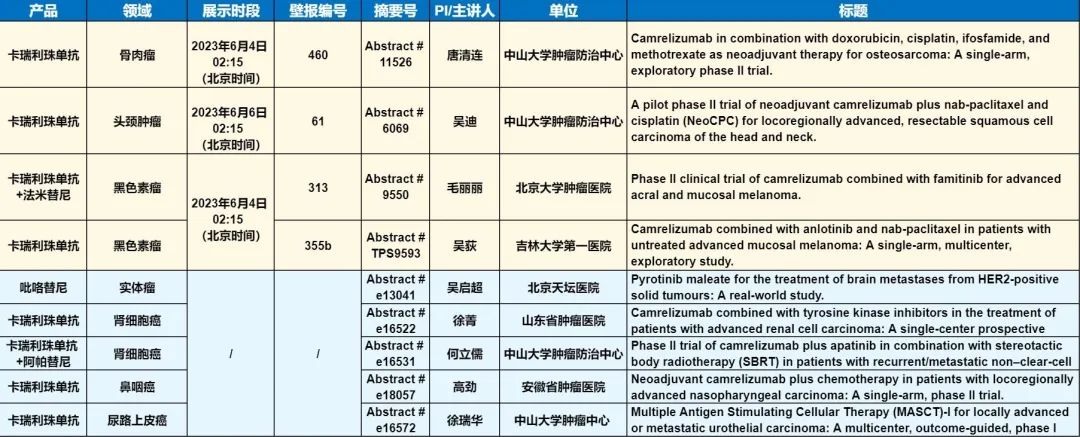 此外,在头颈肿瘤、黑色素瘤、骨肉瘤、鼻咽癌、肾细胞癌、尿路上皮癌等多个领域,卡瑞利珠单抗、吡咯替尼等产品相关研究一共入选了4项壁报展示和5项线上发表,彰显了918博天娱乐旗舰医药强大的自主研发综合实力。